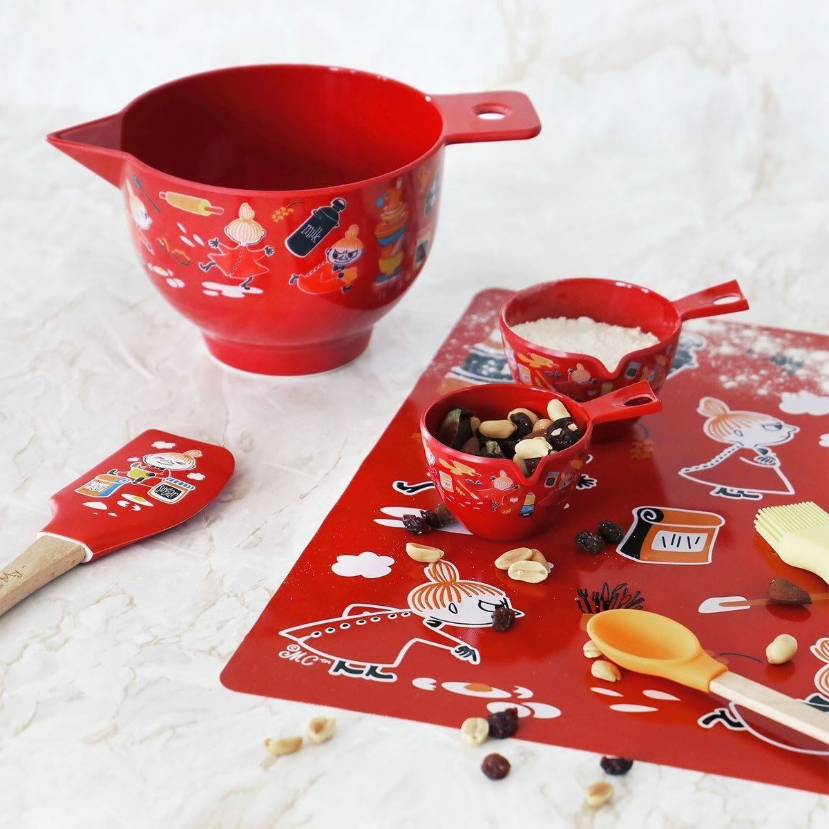 リトルミイがデザインされたこの赤いボウルは、容量1リットルで、計量や混ぜ合わせに便利です。