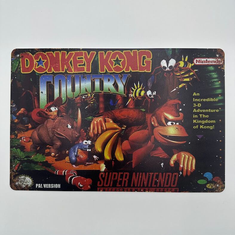 スーパーファミコンの名作アクションゲーム『Donkey Kong Country』をモチーフにしたブリキ看板です。