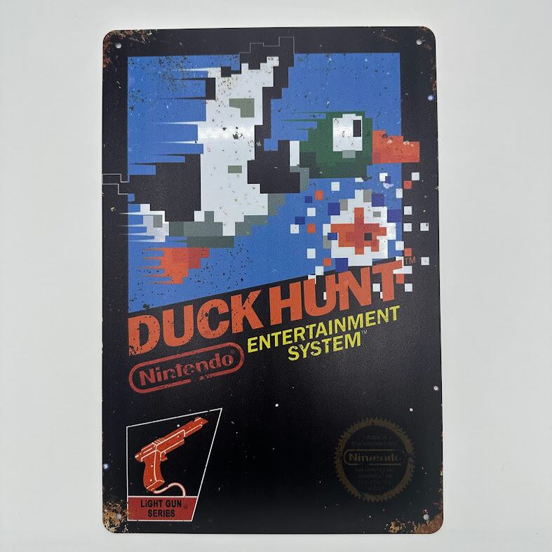 1980年代に一世を風靡したファミコン用光線銃ゲーム『Duck Hunt(ダックハント)』のブリキ看板です。