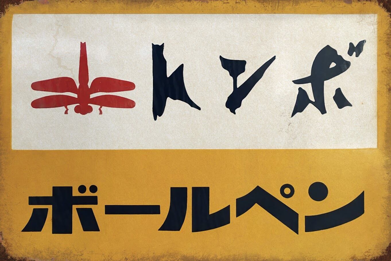 昭和レトロな雰囲気たっぷりの、トンボボールペンのブリキ看板です。
