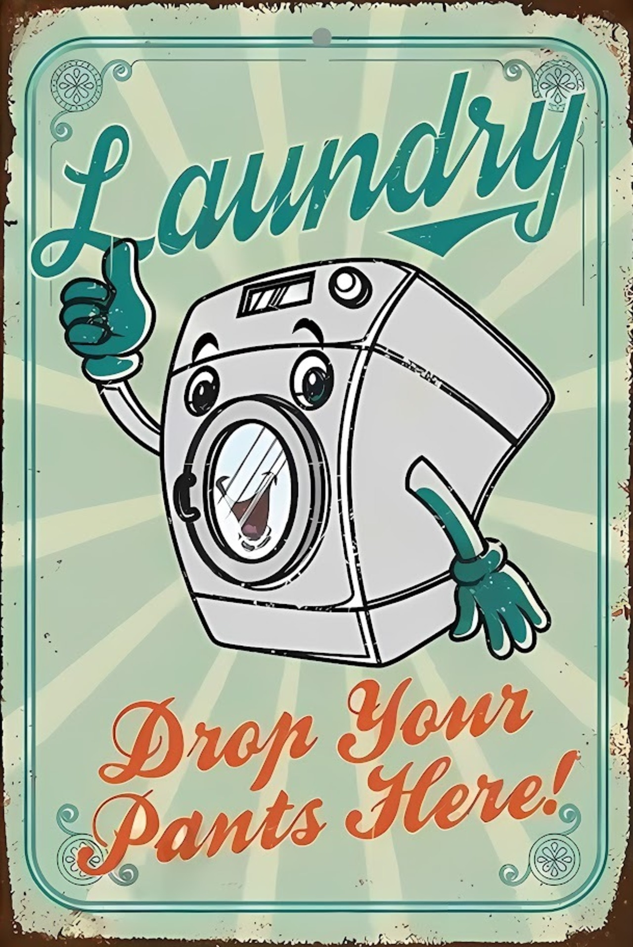 ランドリー 洗濯機 ドロップユアパンツ ブリキ看板