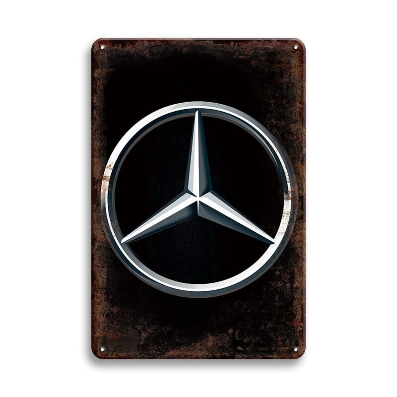 Mercedes Benzのロゴをデザインした高級感あるブリキ看板です。
