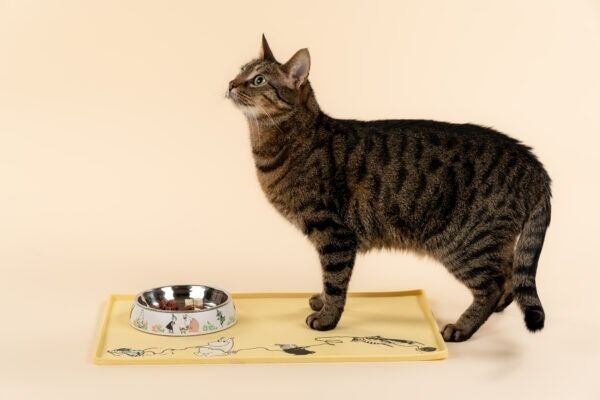 ムーミンの仲間たちが描かれた、可愛いペット用フードボウルです。