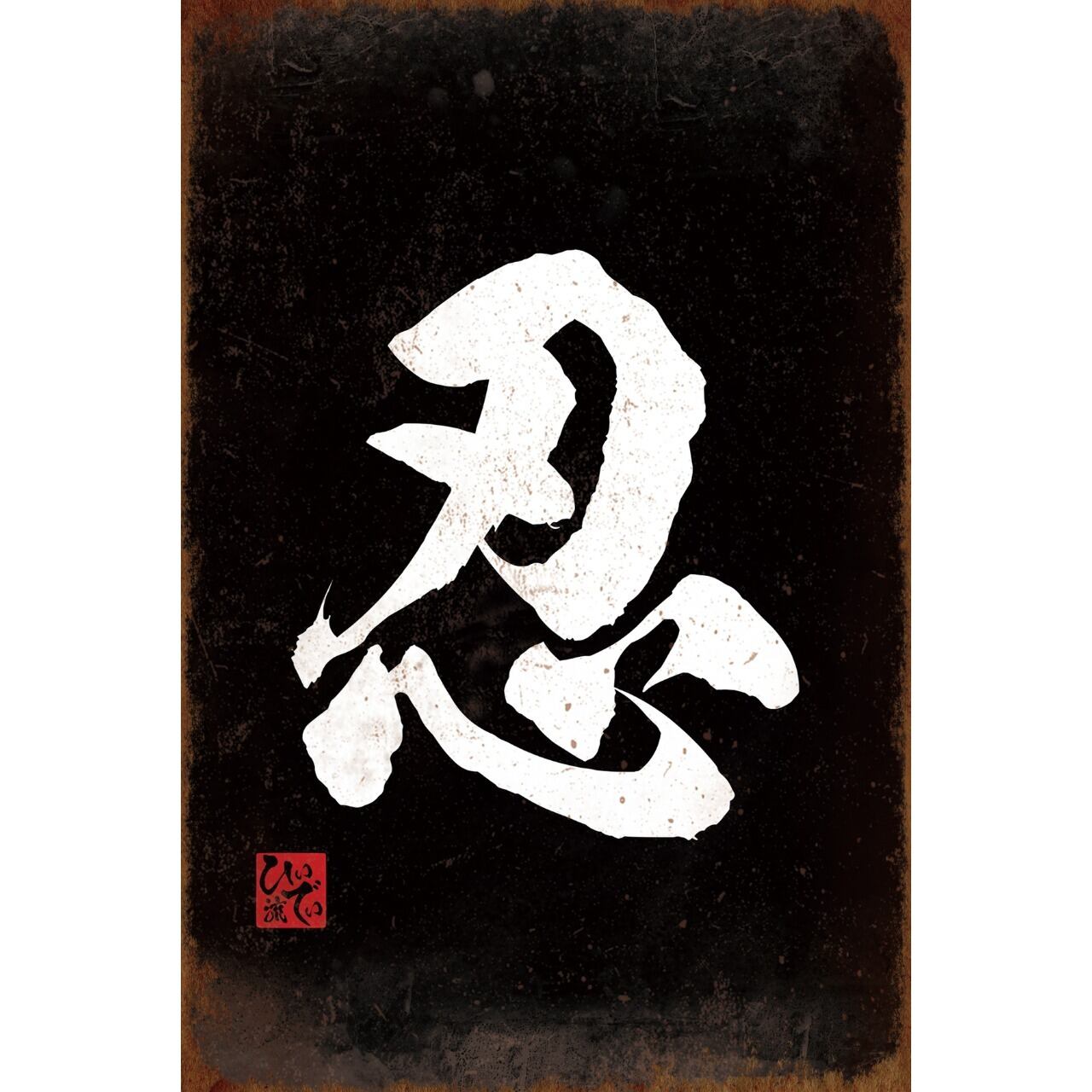 ブリキ看板 忍 漢字 筆文字 ポスター 和風 インテリア レトロ