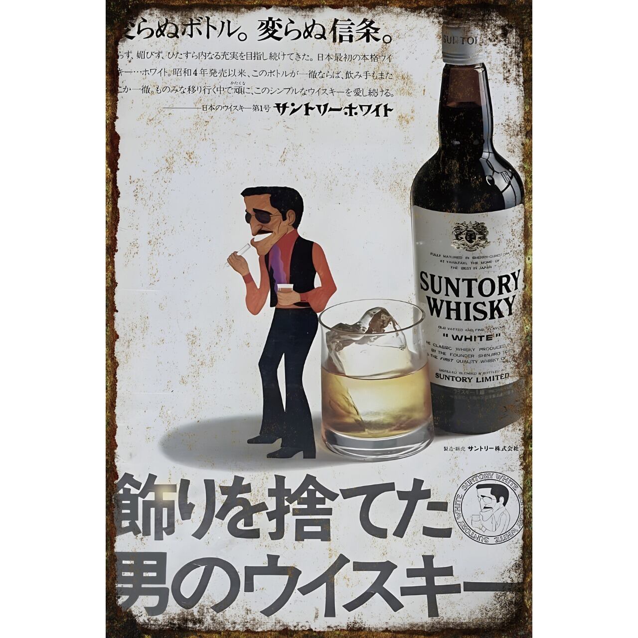 昭和レトロなサントリーウイスキー広告デザインのブリキ看板です。