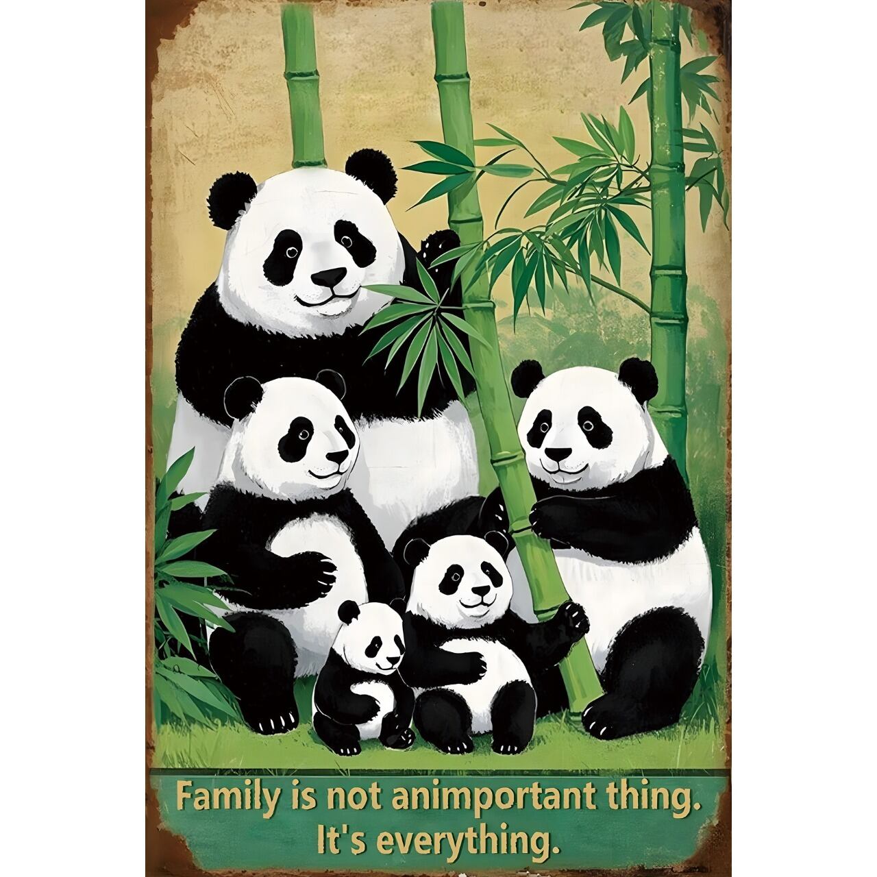 仲良しのパンダ家族が竹林の中で寄り添う、