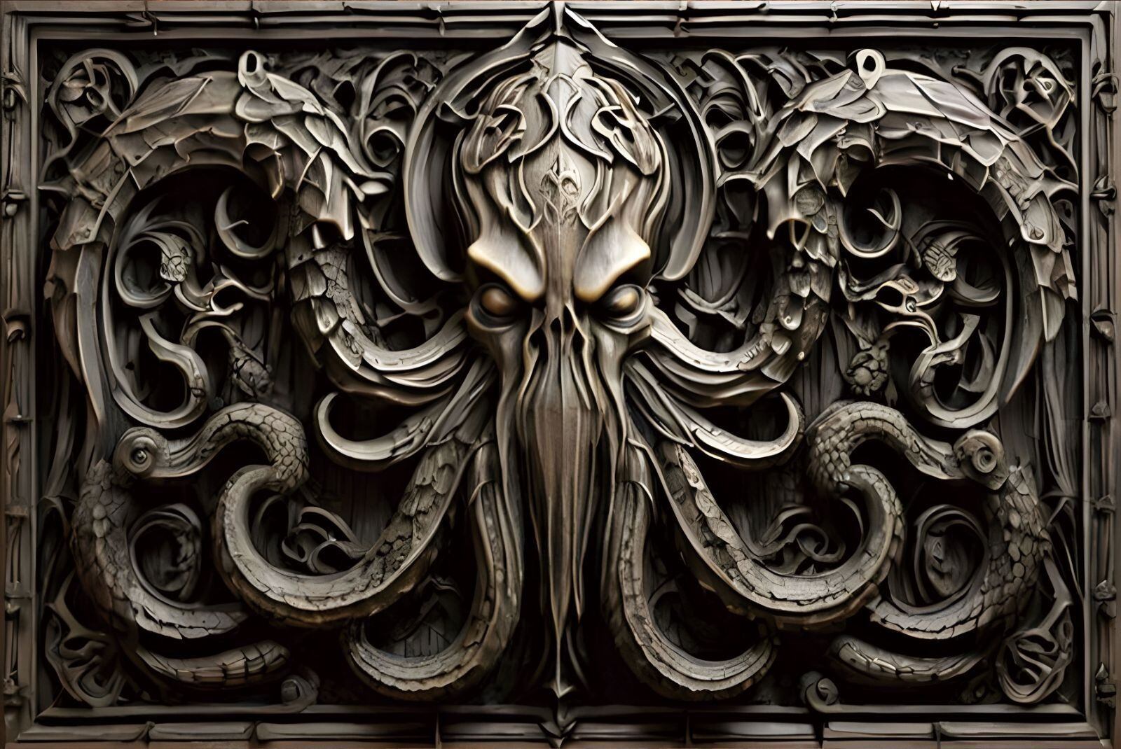 個性的なクトゥルフモチーフのレトロなブリキ看板です。