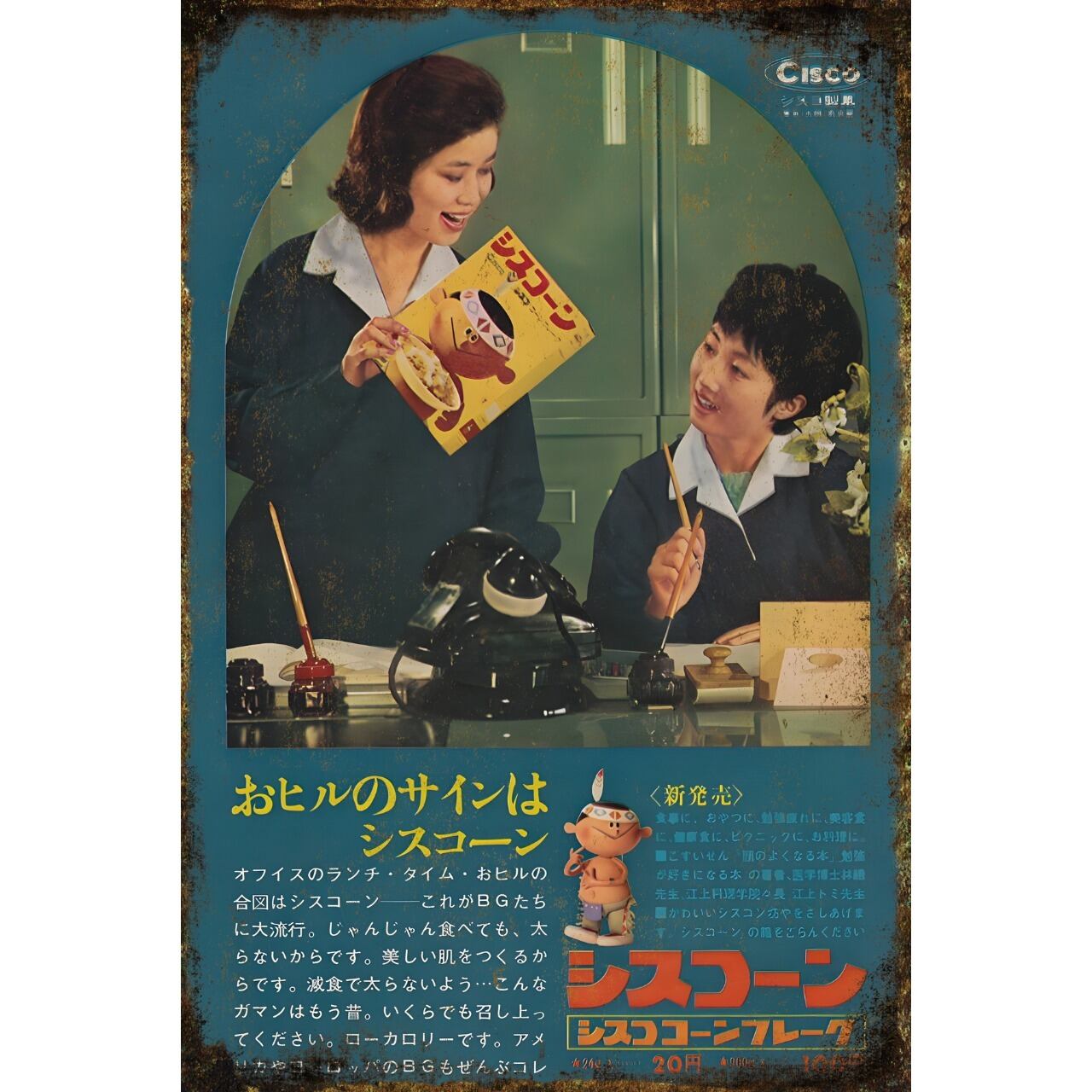 昭和レトロなシスコーンの広告デザインを再現したブリキ看板です。