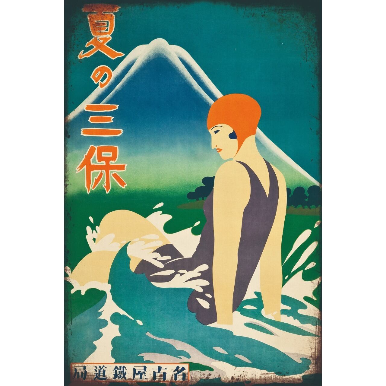 昭和レトロな日本の旅行ポスターデザインを再現したブリキ看板です。
