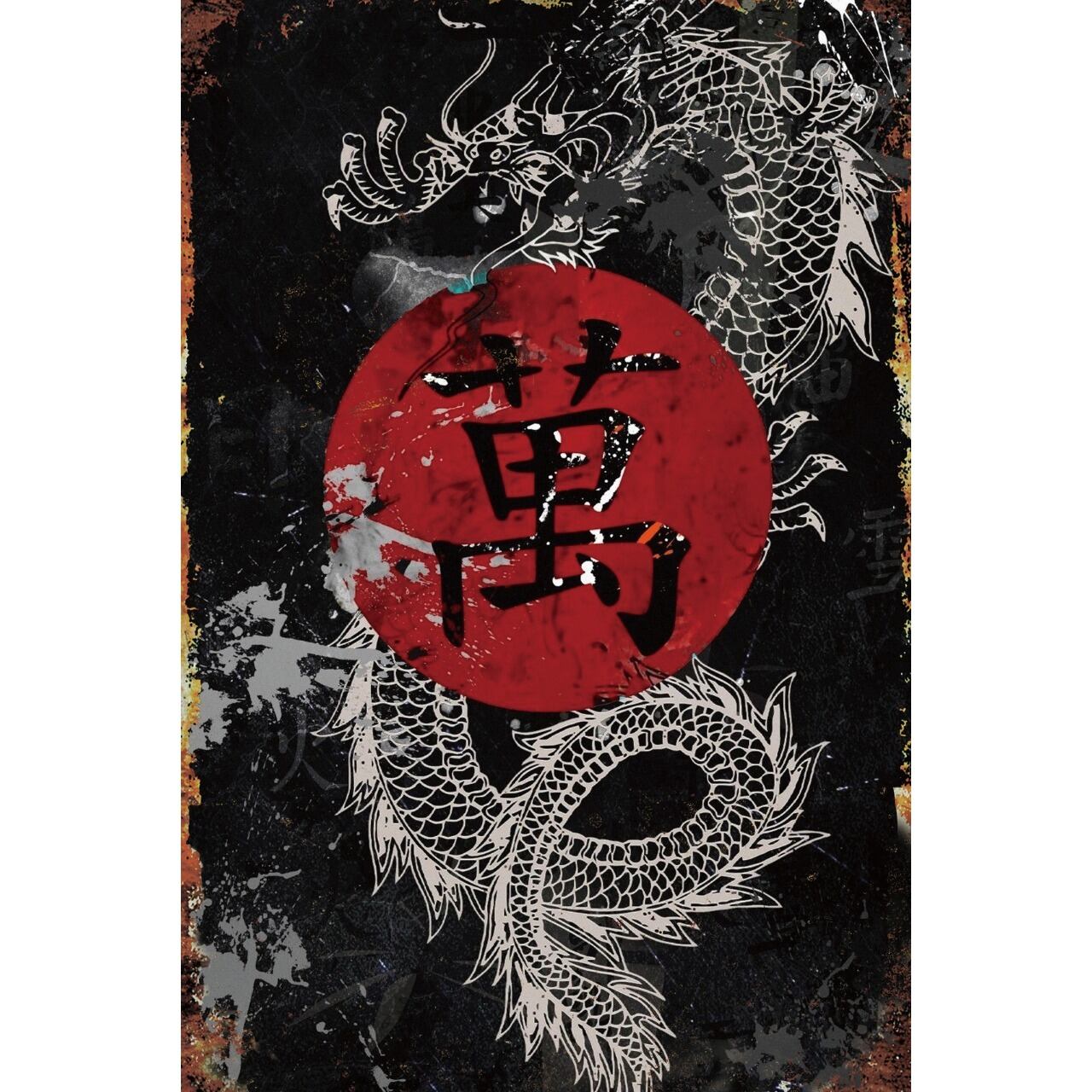 力強い龍と日の丸が描かれた、クールなブリキ看板です。