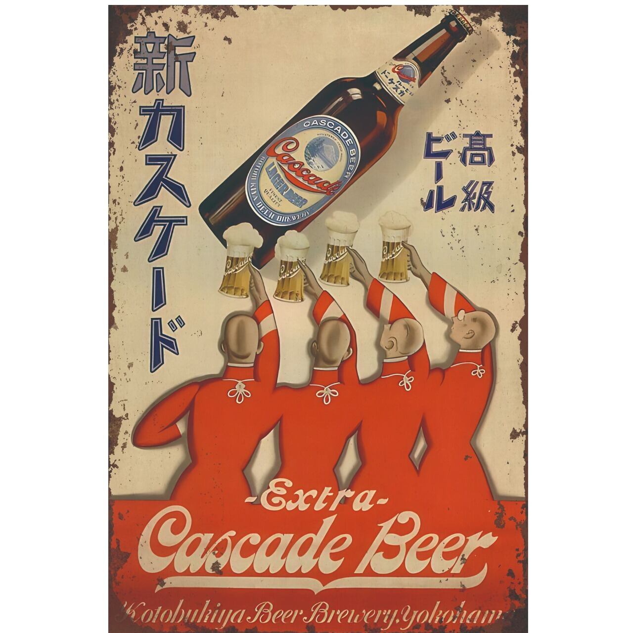 昭和レトロなカスケードビール(Cascade Beer)の広告デザインを再現したブリキ看板です。