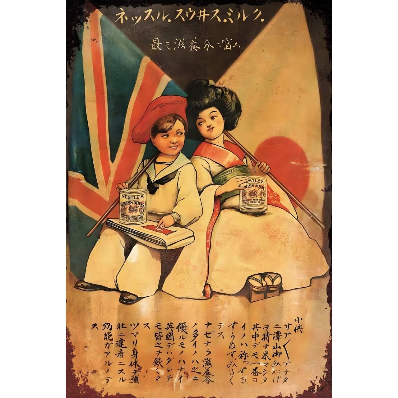 ネスレのヴィンテージ広告をモチーフにした、レトロ感あふれるブリキ看板です。