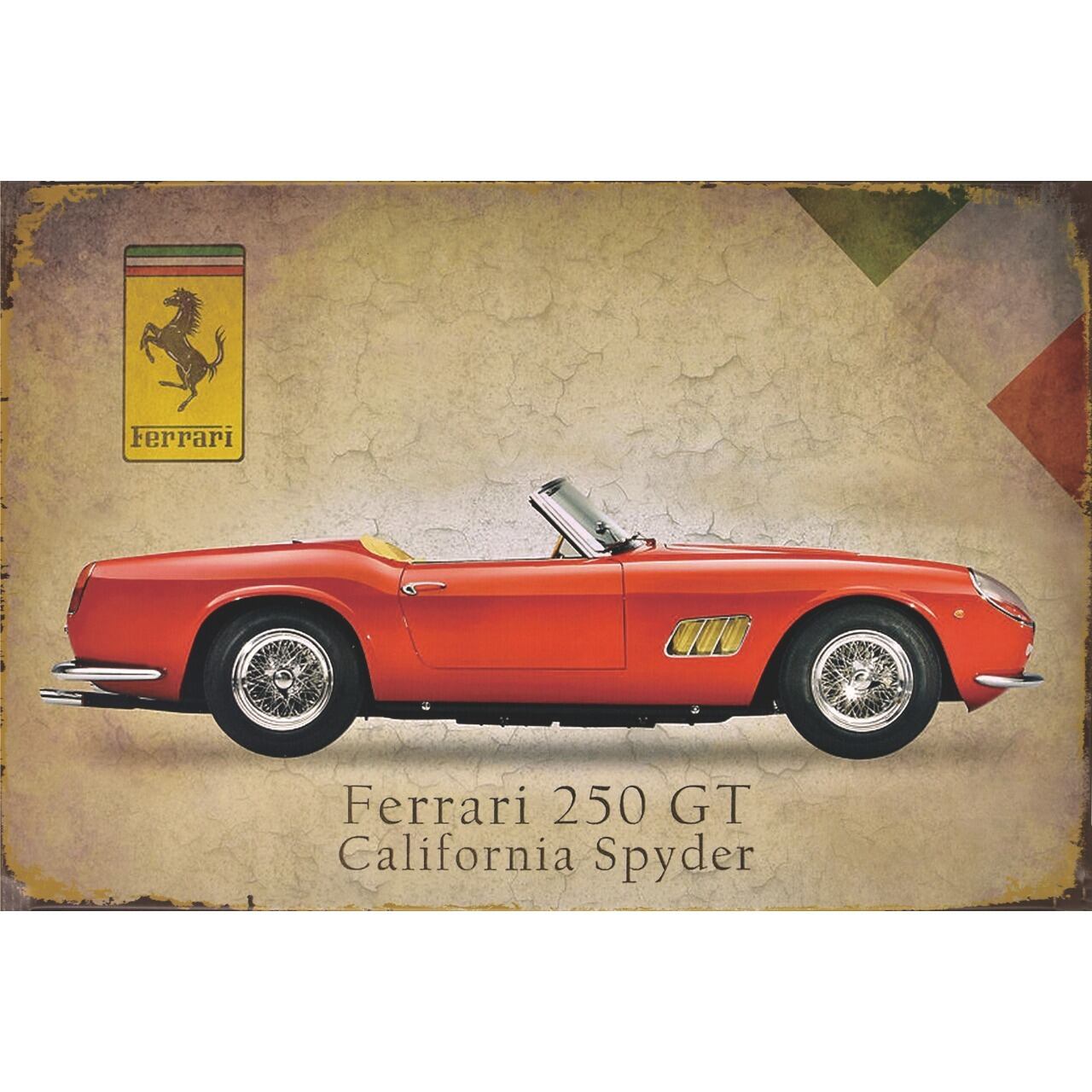鮮やかなフェラーリレッドのオープンカーが横から描かれ、