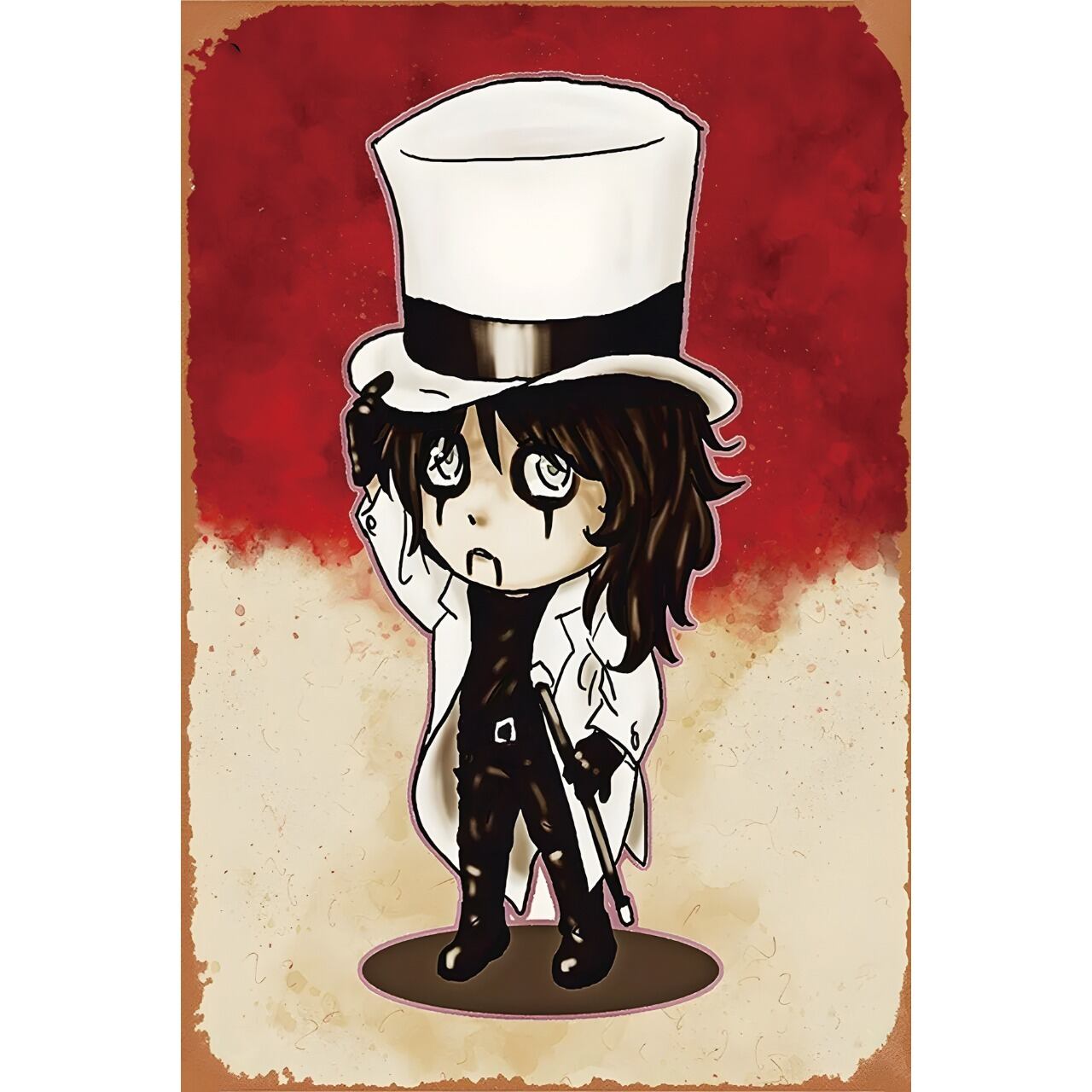白いトップハットとダークな衣装が特徴的で、