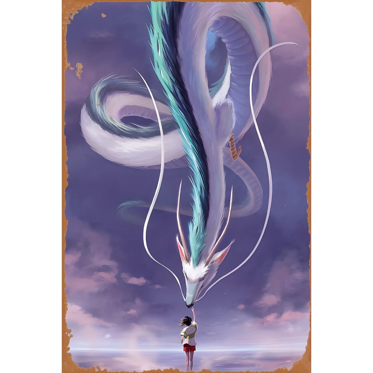 空と海を背景にしたキャラクターアートのブリキ看板です。