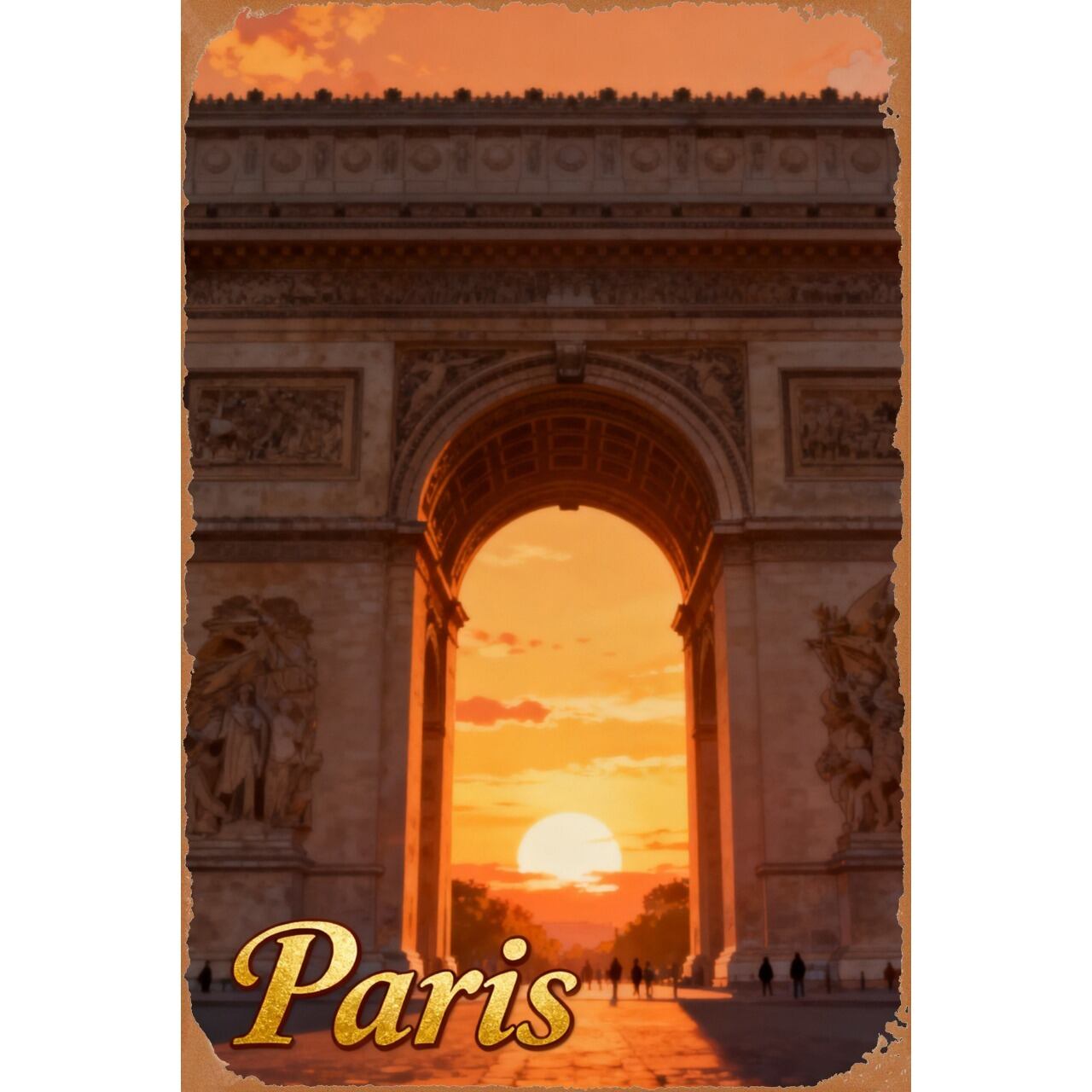 夕焼けに染まるパリの凱旋門をモチーフにした、