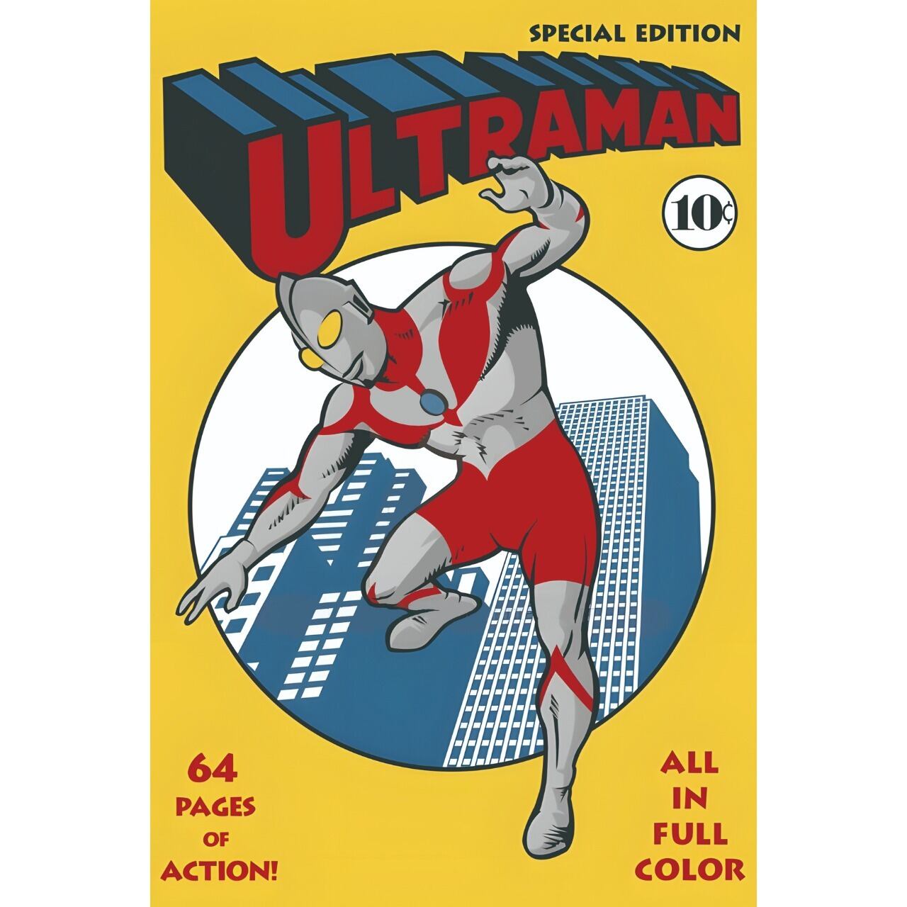 中央には街を守るウルトラマンが描かれ、