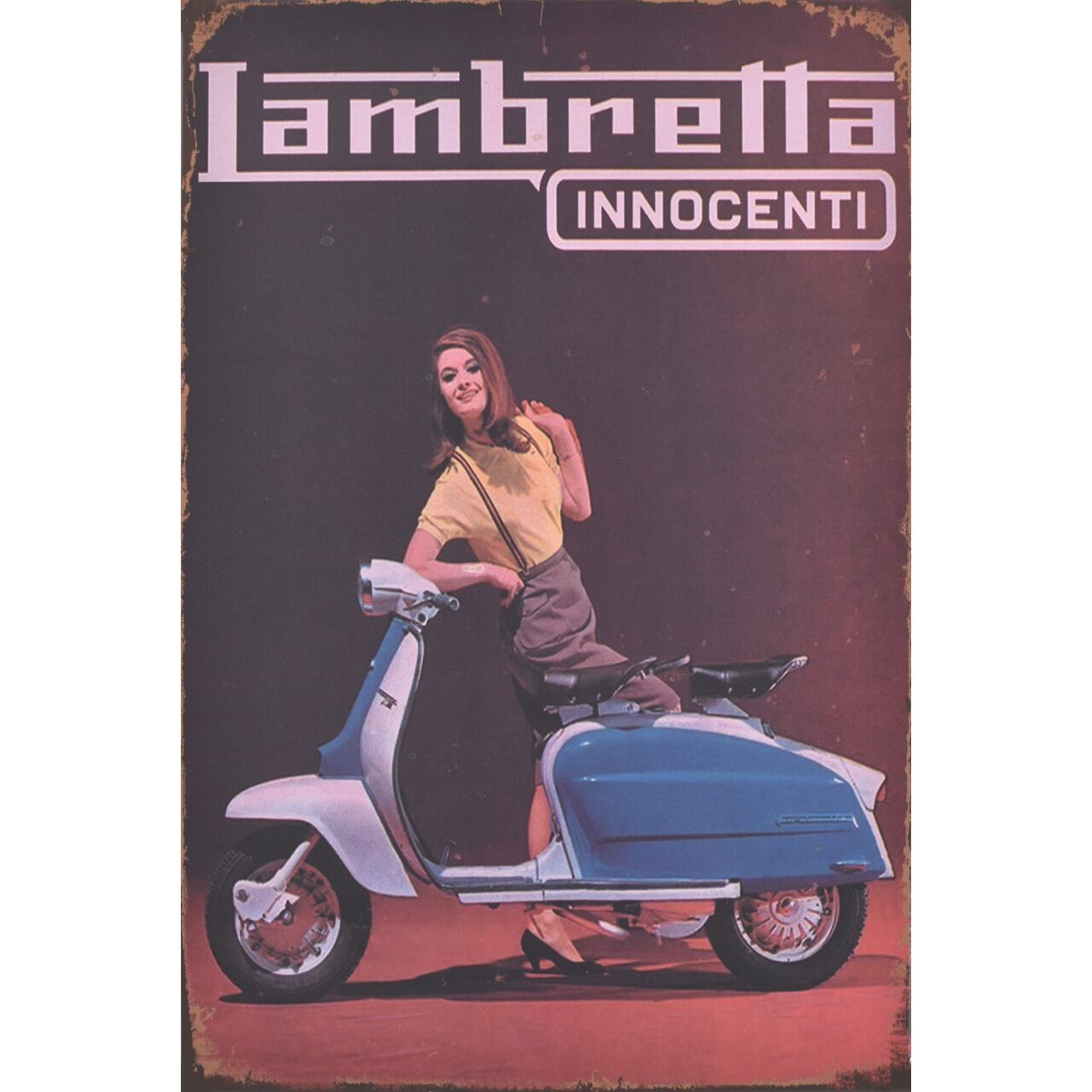 レトロな雰囲気が魅力のLambrettaデザインのブリキ看板です。