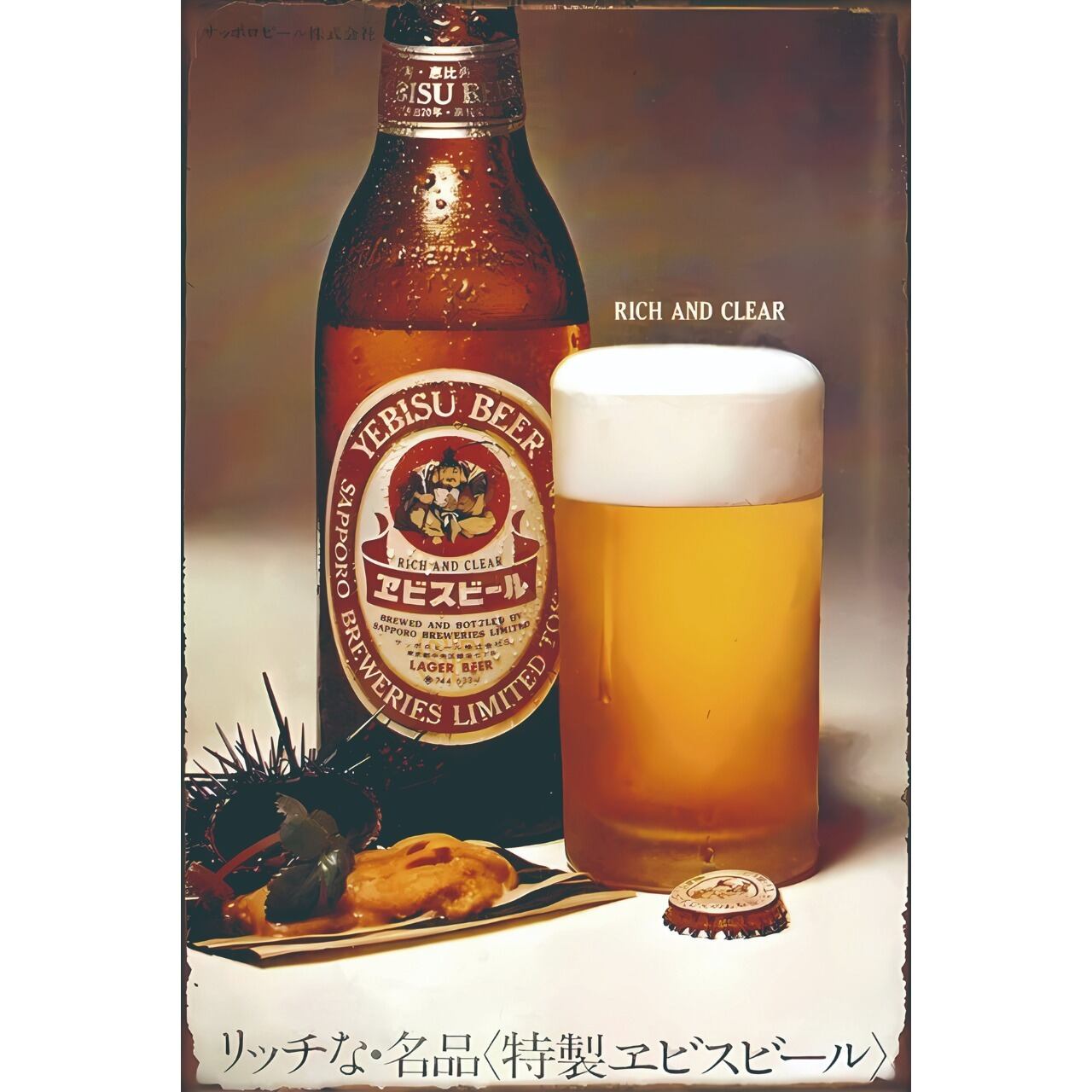レトロな雰囲気が魅力のエビスビール広告デザインのブリキ看板です。