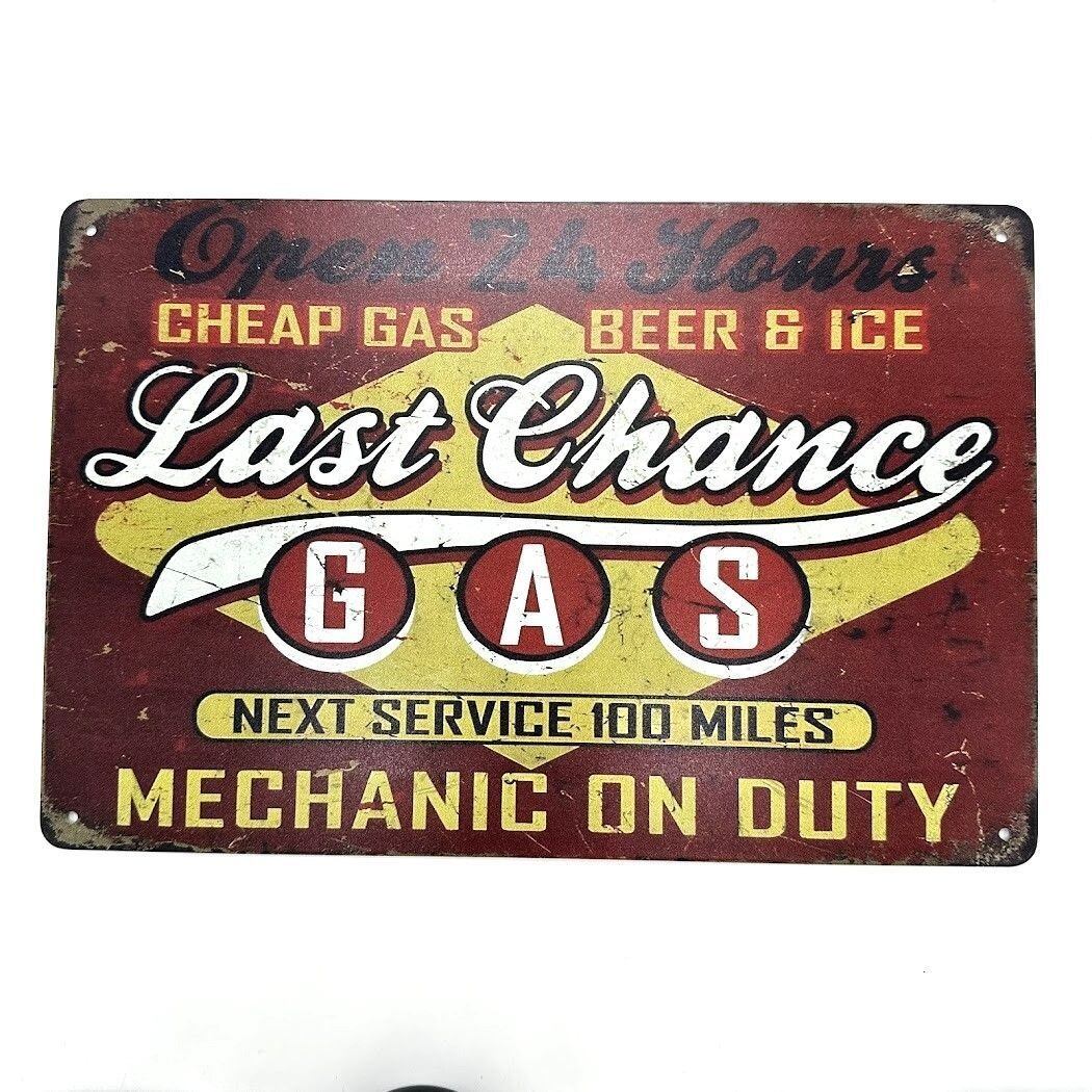 アメリカンガスステーションをモチーフにした、レトロ感あふれるブリキ看板です。