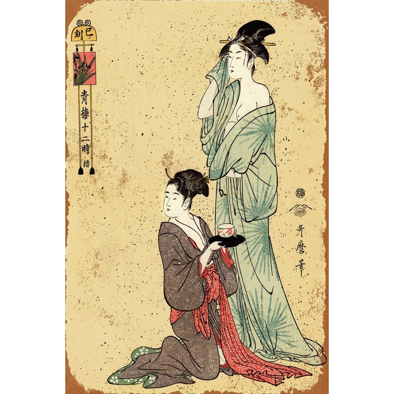 江戸時代の浮世絵師・喜多川歌麿の美人画を再現したブリキ看板です。