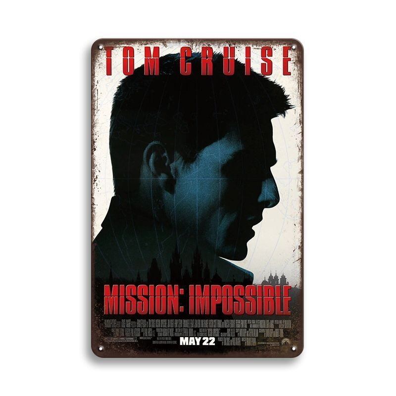 映画「ミッション:インポッシブル」の迫力あるビジュアルをデザインしたブリキ看板です。