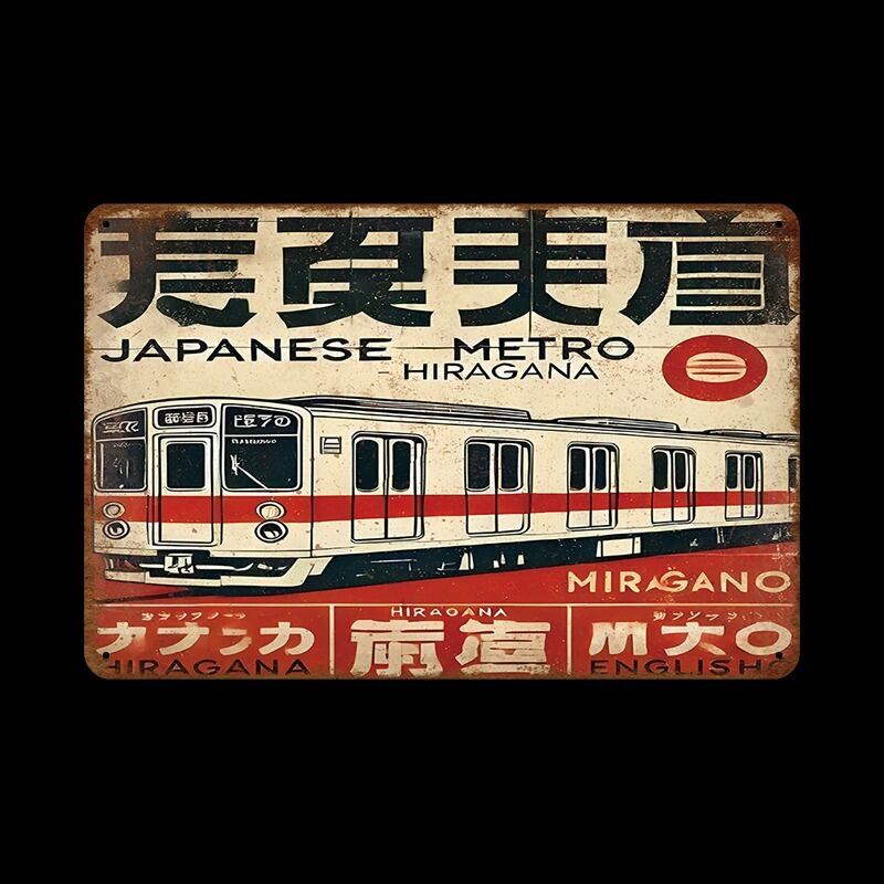 日本の地下鉄をモチーフにした、レトロ感あふれるデザインのブリキ看板です。