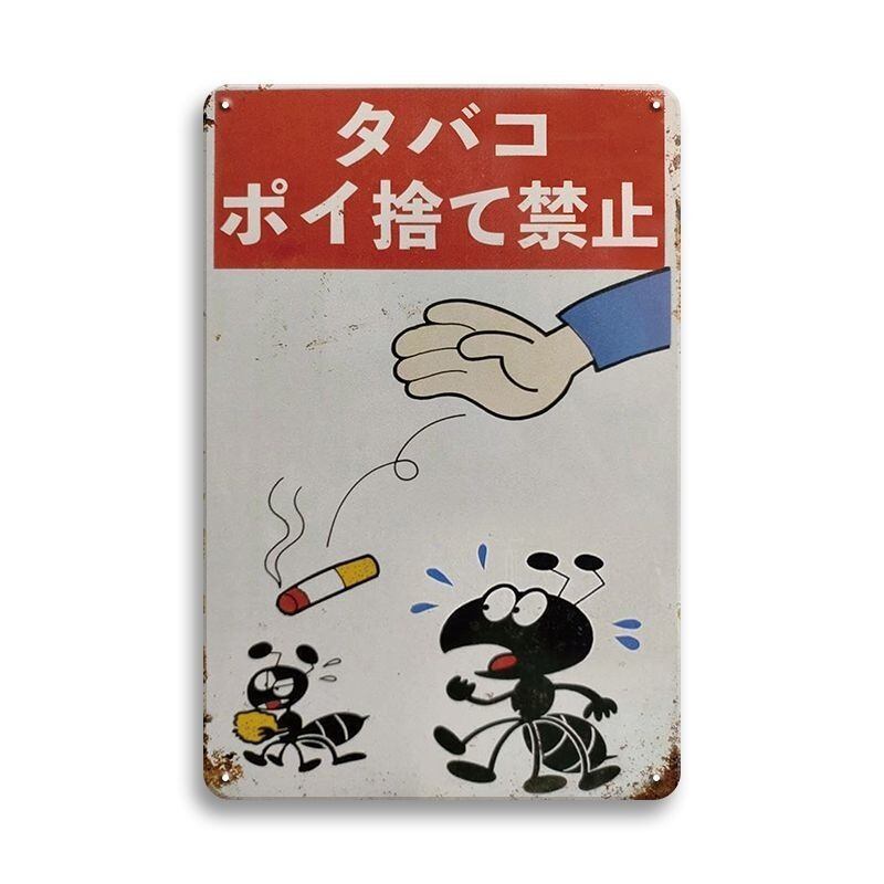 「タバコ ポイ捨て禁止」のメッセージが大きく描かれた、分かりやすい注意喚起デザインのブリキ看板です。
