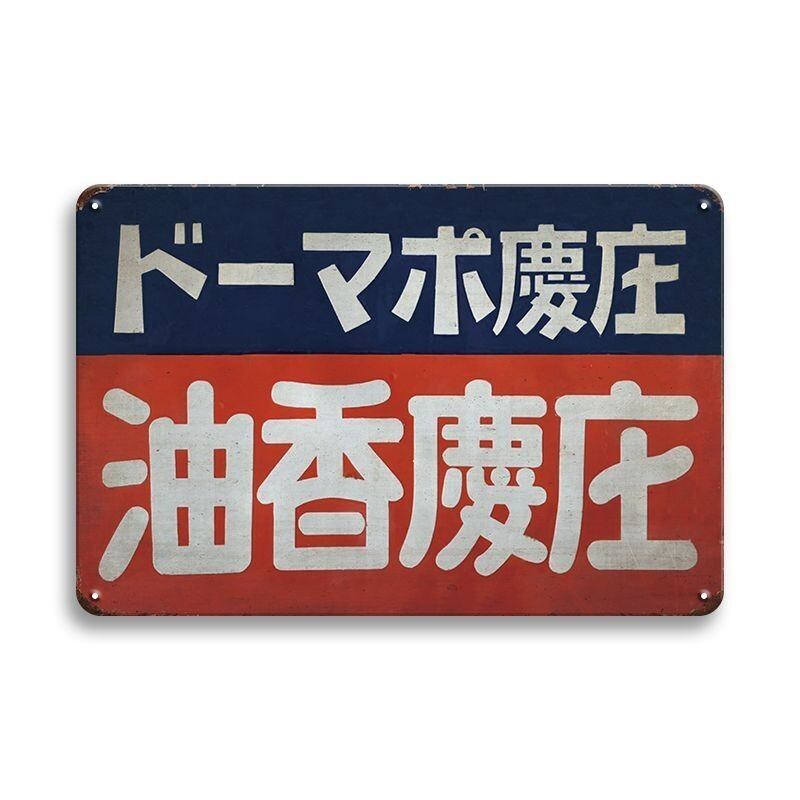 昭和レトロな工場表示を再現した、味わい深いデザインのブリキ看板です。