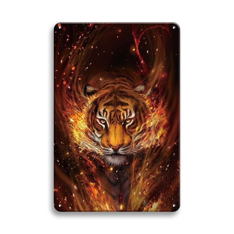 迫力満点の虎を描いた縦型ブリキ製ブリキ看板です。