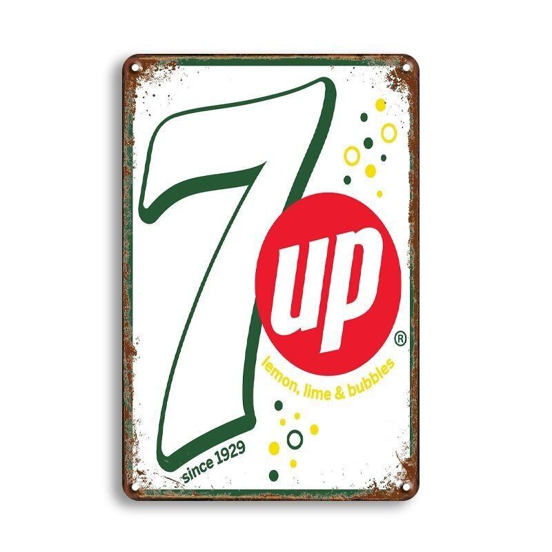 7UPのクラシックロゴデザインが映えるブリキ看板です。