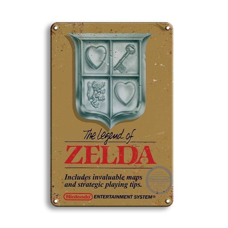 ゼルダの伝説をモチーフにしたレトロデザインのブリキ看板です。
