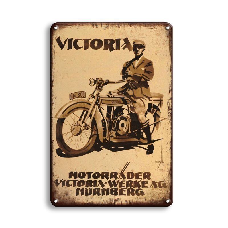 クラシックバイク「Victoria(ヴィクトリア)」デザインのレトロ調ブリキ看板です。