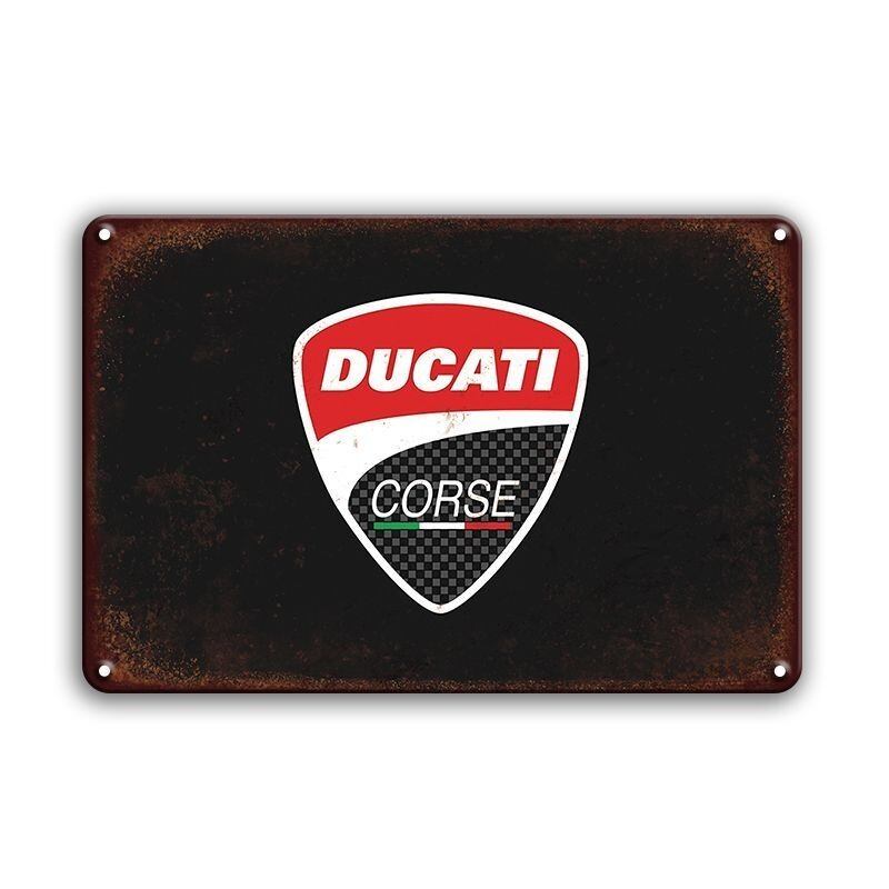 DUCATI CORSEロゴデザインのブリキ看板です。