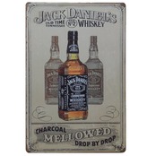 ジャックダニエルのウイスキーボトルデザインが描かれたレトロなブリキ看板です。