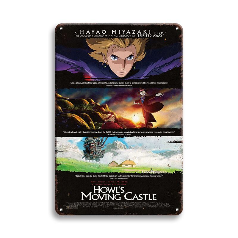 スタジオジブリの人気作品「ハウルの動く城」の世界観がデザインされたブリキ看板です。
