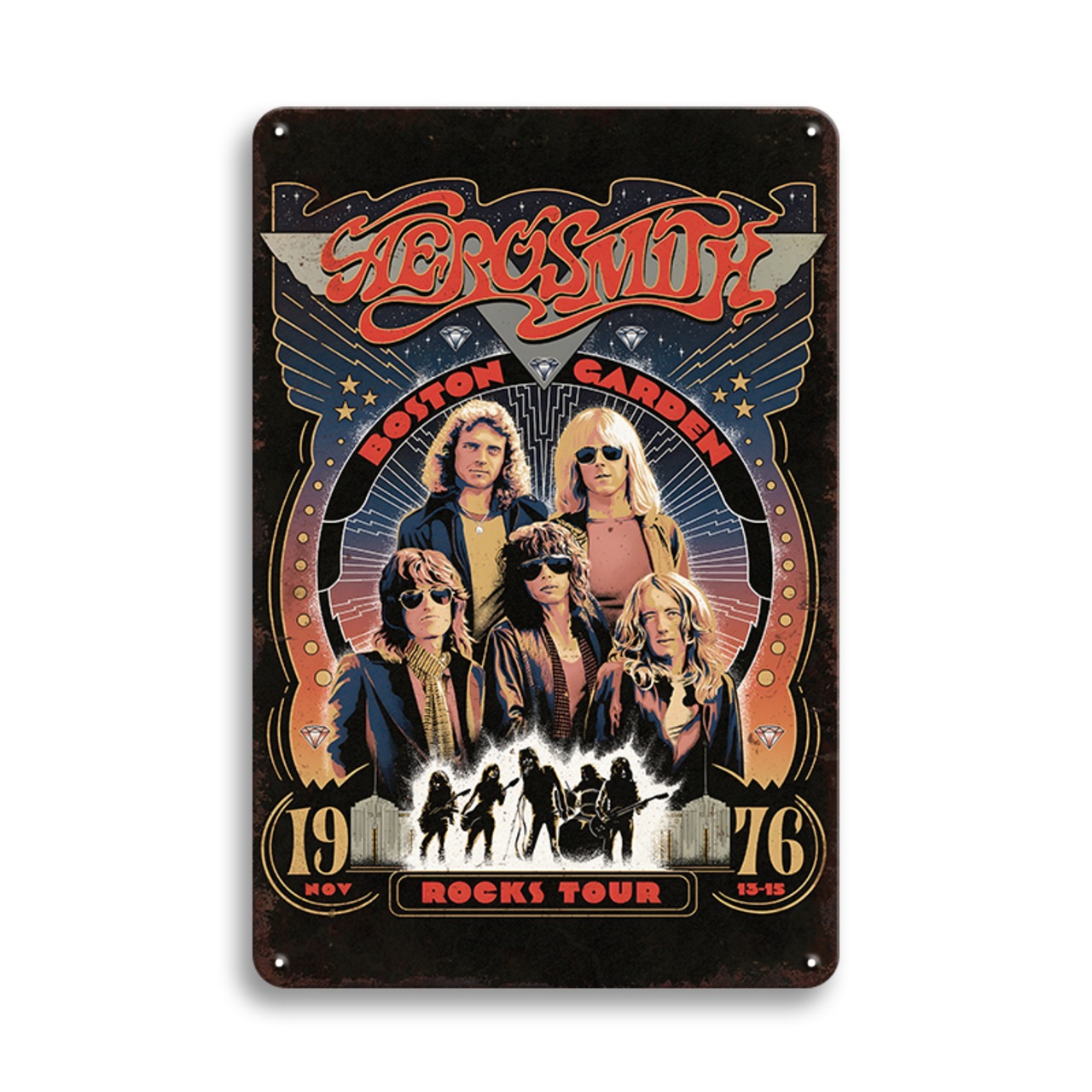 エアロスミス(Aerosmith)のヴィンテージツアーデザインがおしゃれなブリキ看板です。