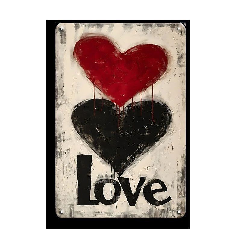 赤と黒のハートが印象的な「LOVE」デザインのブリキ看板です。