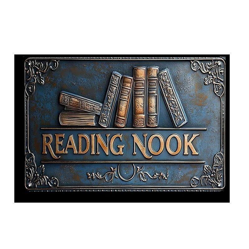 レトロな雰囲気がおしゃれな「Reading Nook(読書スペース)」デザインのブリキ看板です。