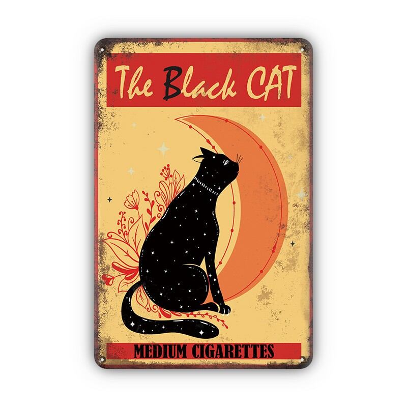 レトロな雰囲気がおしゃれなブラックキャットデザインのブリキ看板です。