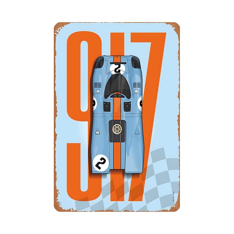 クラシックなレーシングカー「ポルシェ917」をモチーフにしたブリキ看板です。