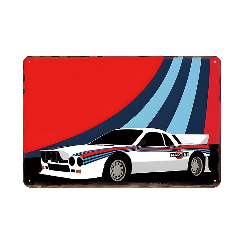 ブリキ看板 車 ランチアデルタ ラリーカー MARTINI レトロ インテリア おしゃれ 壁飾り