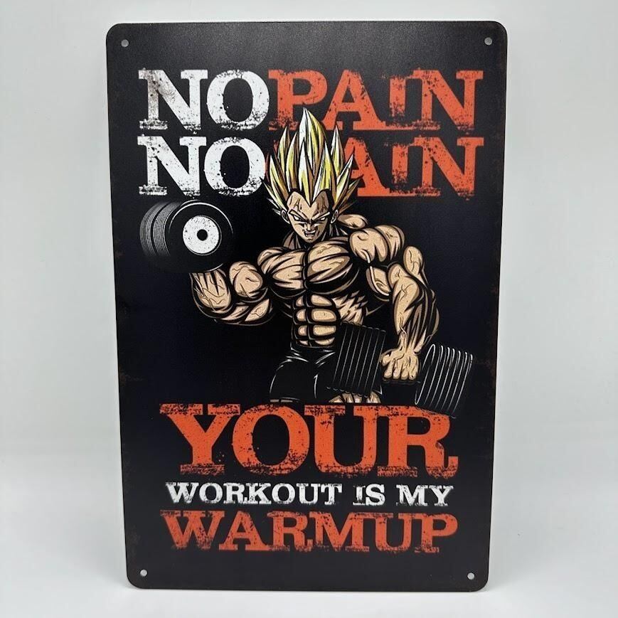 このレトロなブリキ看板は、筋トレ好きの方にぴったりのデザインです。