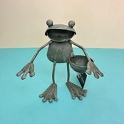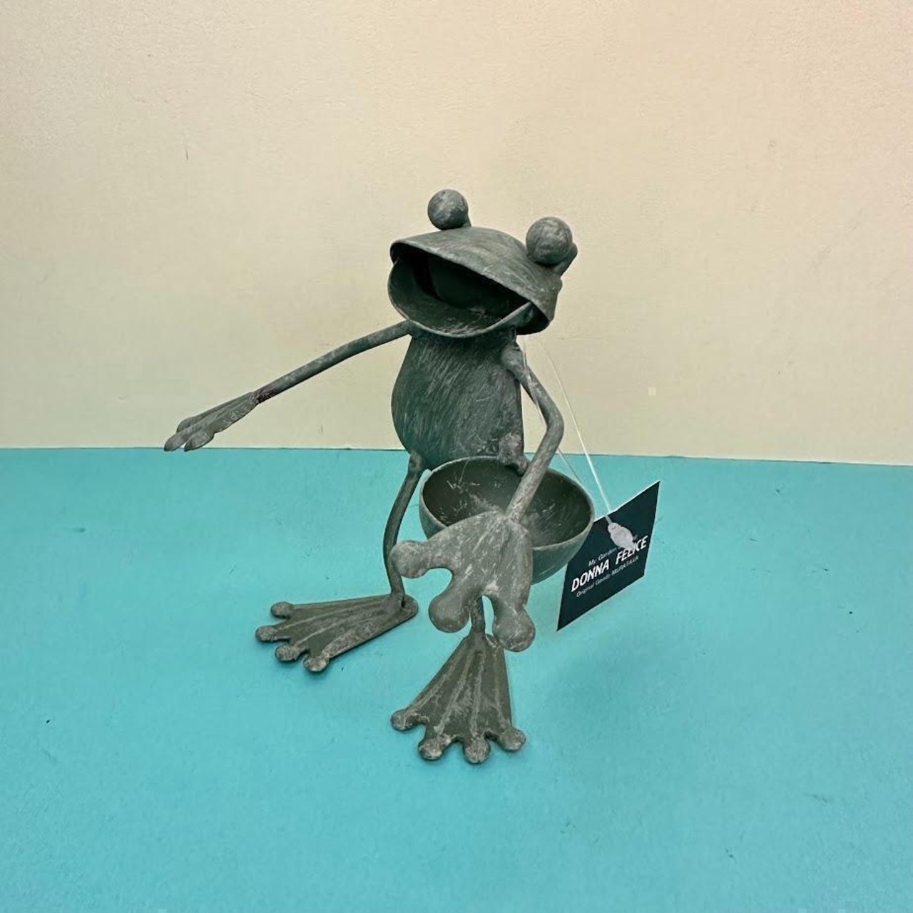 ブリキ製の カエル プチカエル 風呂上りです。 【サイズ】カエル:幅約9cm、奥行き約4cm、高さ約9cm 【素材】ブリキ