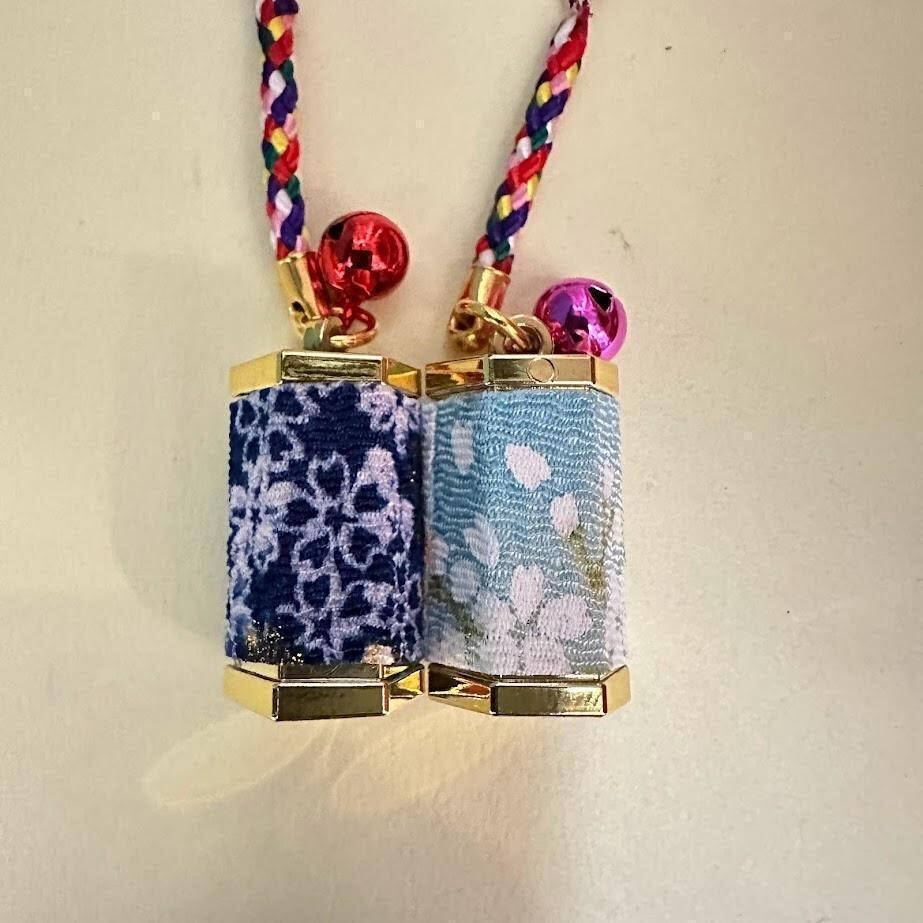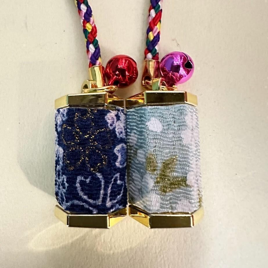 ちりめん おみくじ 鈴付き キーホルダー ブルー 水色 2個セットです。