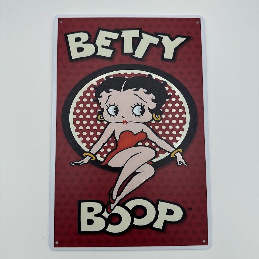 こちらは、人気キャラクターBetty Boopをモチーフにしたおしゃれなブリキ看板です。
