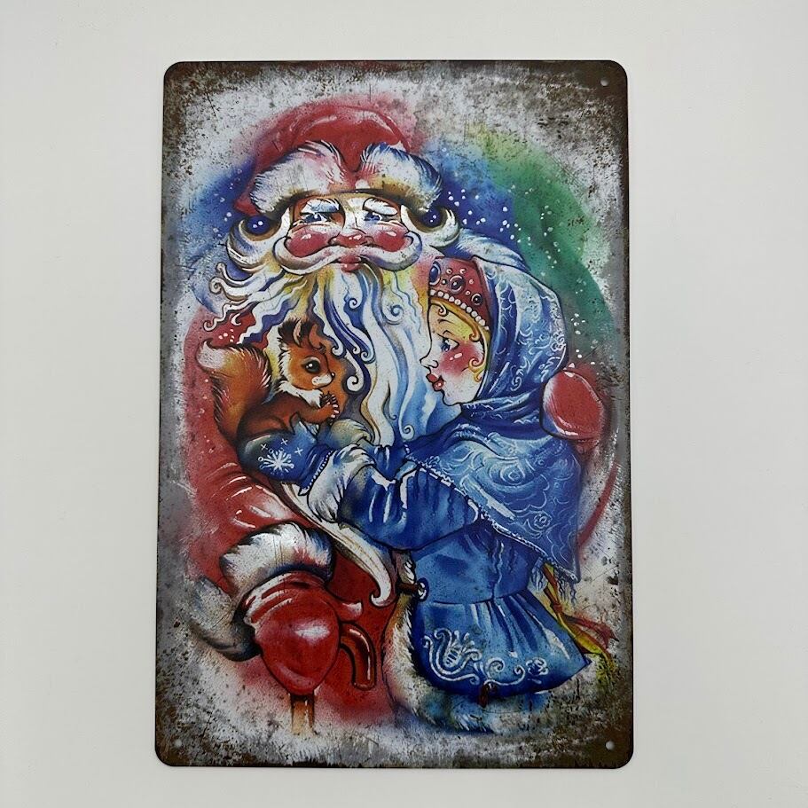 こちらは、サンタクロースと冬の童話をイメージしたレトロなブリキ看板です。