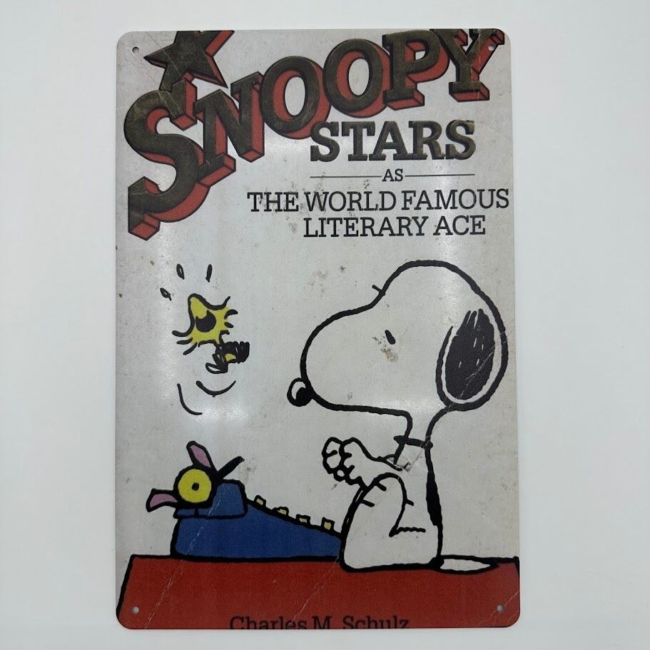 こちらはスヌーピーとウッドストックが描かれたレトロなデザインのブリキ看板です。 サイズは縦30cm、横20cmで、クラシックな雰囲気が漂う魅力的なアイテムです。