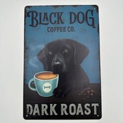 こちらは、ブリキ製の「BLACK DOG COFFEE CO. - DARK ROAST」をテーマにしたレトロ看板です。